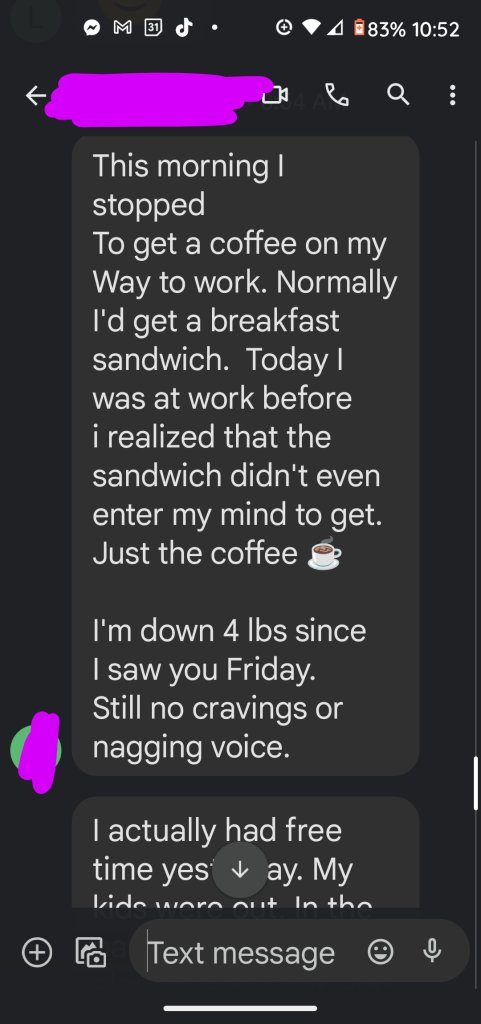 A new client texted me yesterday and I was so excited to hear of the positive changes she’s already noticed! With her permission, I wanted to share her triumph with you.